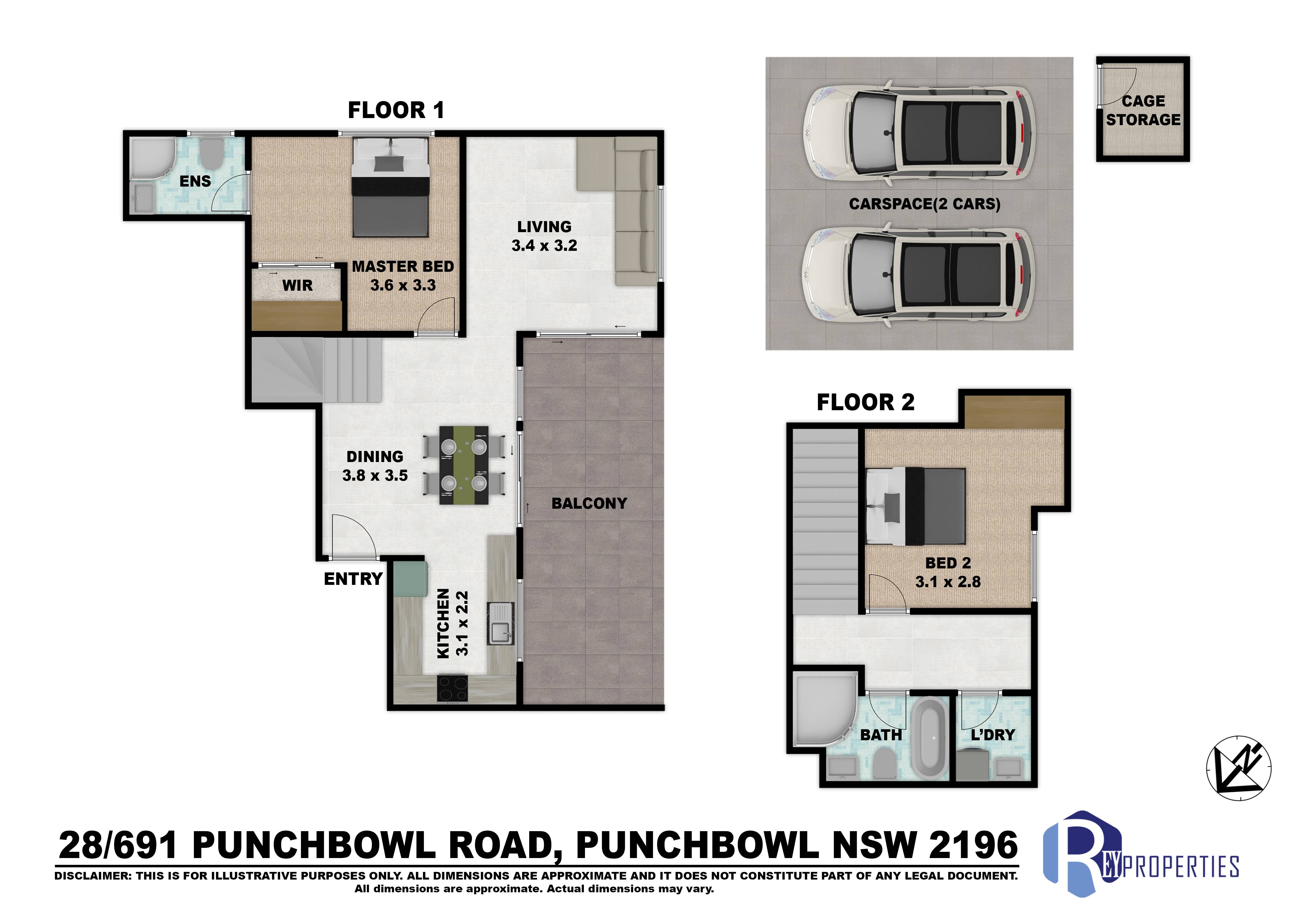 2 beds | 2 baths | 1 car space |