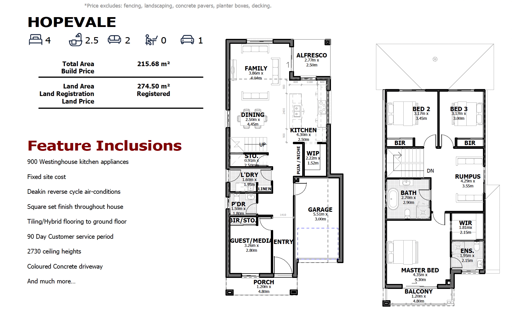 • Contemporary two-level design with rumpus, balcony, and alfresco
